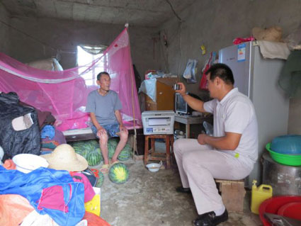 6月29日,记者跟随三和乡大郢村的社保信息员汤本利,来到该村76岁低保户汤传和家中,为汤老伯和他的妻子办理参保。在随行的车上,记者发现了一部打印机和一台照相机。“参加城乡居民养老保险需要照片、户口本、身份证复印件等信息,村里不少老人腿脚不便,带着这些‘装备’,到村民家里去一次性就能收集齐信息,既节省了参保时间和成本,也方便了群众。”在三和乡,有14位像汤本利一样的社保信息员,他们走村串户,把城乡居民养老保险这项惠民利民的好政策,及时送到了居民的家门口。