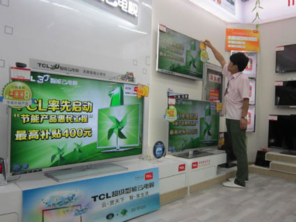 采访当日,记者从几家电器卖场了解到,从六月份开始实施家电节能补贴新政以来,有的商场家电产品销售与去年同期相比基本持平,有的则明显低于去年的同期水平。在国庆路的一家大型家电卖场,一位TCL彩电销售代表告诉记者,他负责销售的TCL彩电中有3个系列7种型号符合节能产品补贴标准,但在刚过去的6月份,他卖出的10台彩电中却没有一台是节能补贴产品。“老百姓买家电产品讲究经济实惠,但这节能补贴的家电产品价格普遍较高,低者五六千元,高的要上万元。符合节能补贴标准的彩电最高才补贴400元,老百姓感觉不到补贴的力度。”他举例道,以同样48寸、耗电量130W同属一级能效的TCL的两种不同型号的液晶彩电为例,符合节能补贴型号的彩电原价6590元,活动价6290元,再减去节能补贴400元,也需要5890元;而另一型号的彩电原价同样是6590元,但活动价仅4450元。
