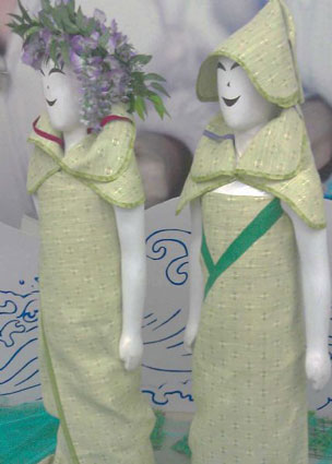 “以前在网上看过,今天看到现场版的,还是很吃惊,这是谁想到的点子,太有才了!”7月9日,在淮南市某超市内,一位市民被店内的两个“穿”着凉席衣服的塑料模特所吸引,感叹不已。记者仔细端详了这两个身高一米多、身着奇装的模特,确认他们所穿的衣服是用凉席折叠而成,远看还颇有几分晚宴“盛装”的味道。上图:你能看出塑料模特的衣服是用凉席做的吗?