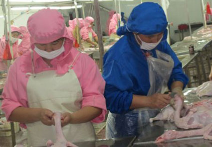 安徽省“861”项目之一、皖北最大的肉鸭深加工厂——凤台县新集镇惠邦食品有限公司于日前正式投产。该项目总投资1.2亿元,拥有现代化的生产线,生产“淮康”牌肉鸭系列产品10多种,该厂解决了400多名采煤沉陷区失地农民就业难题,并带动周边300多农户养殖肉鸭。