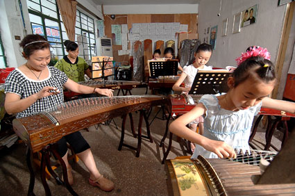 7月15日下午,暑假期间的学生们根据各自的兴趣走进了各类培训班,他们有的学习舞蹈,有的学习绘画,有的学习弹琴等,以此来丰富自己的暑假生活。图为在市青少年宫古筝培训班里,学生们在老师的辅导下,学习各种演奏技能手法。