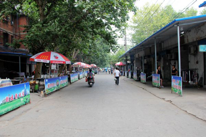 在基地小街西南边,铁运小区与龙泉山庄之间有一条“死胡同”,原先占据小街路面、摆摊设点的菜贩们都迁到了这里,形成了一个流动“菜市场”,不少居民前来买菜。记者看到,由于两边树木茂盛,这条道路在炎炎夏日里很是凉爽,不管是树荫下摆摊的菜贩,还是前来买菜的居民,都显得很惬意。