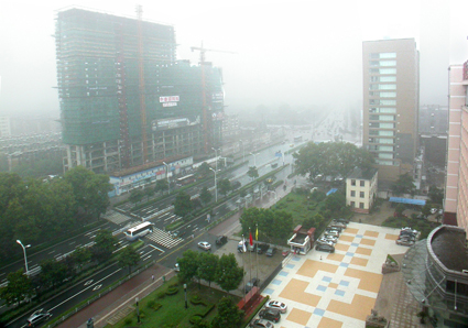 8月13日凌晨,我市又遭新一轮降雨,到上午9时左右,雨渐渐停止,而后我市部分地区呈现出“雾色迷都”的景象。图为上午10时30分,洞山西路一片迷雾。