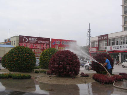 9月3日上午,记者来到淮南市淮河大道与国庆路交叉口处,位于路口西北处宽阔地带,5个直径约两米的巨大花球已经落位,围装点的花卉正在摆放。为了保证鲜花的存活,园林工人正在为鲜花浇水。尽管花卉构成的整体景观还没完全搭好,但现场已经能够看出这一花卉造型的大致模样。