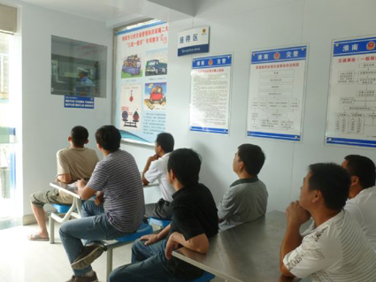 淮南市公安交通管理局田家庵二大队把交通安全放在首位,凡是前来审驾驶证的大中型客车司机,都要安排其参加审车前培训,并播放一些重大交通事故等视频,让驾驶员提高警惕。图为9月3日上午,前来审车的驾驶员正在看视频。