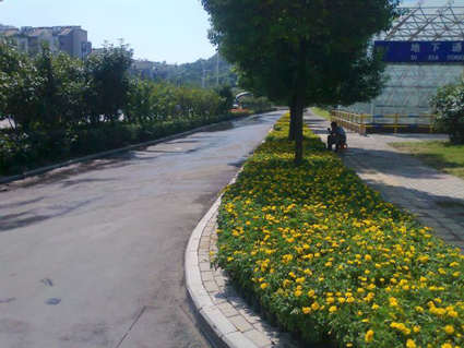 图一:淮河大道洞山隧道附近人行道上的鲜花正艳