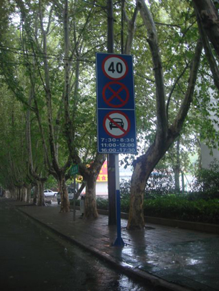 图二:迎宾路边树立的交通标识牌标明了限时通行时段。