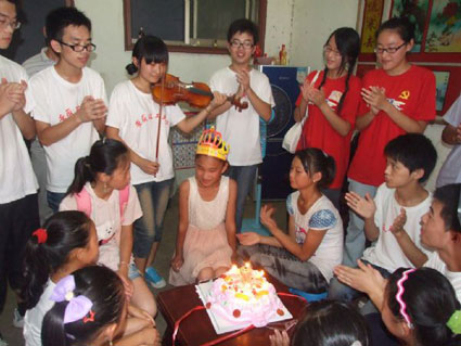 图:暑期,三下乡志愿者陪留守儿童过生日