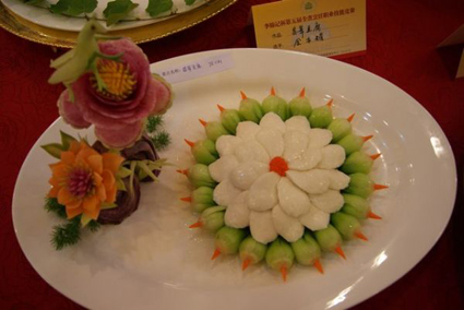 经过激烈角逐,最终安徽楚源公司所属新集煤矿宾馆选手王清风的餐饮服务摆台作品《金榜题名》和杨培宁的摆台作品《荷塘月色》荣获大赛金奖;参赛的果雕作品《中华国威》获大赛特金奖;冷拼作品《天香六合》、面点作品《喜庆丰收》、《大救驾》、热菜作品《紫气东来》、《翡翠豆腐》荣获大赛银奖,楚源公司代表队荣获团体赛特金奖。王清风、杨培宁将以“安徽省技术能手”的身份获得赴北京参加全国烹饪大赛资格。