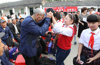 重阳节前,淮南日报社小记者俱乐部小记者用早报义卖活动所得的费用,购买了帽子,袜子等秋冬季节保暖用品,送给了杨公镇敬老院的47位老人。10月20日活动当天,百大满天星志愿者服务队也给老人们带去了保暖衣、营养品等礼物,给老人们送去了温暖。