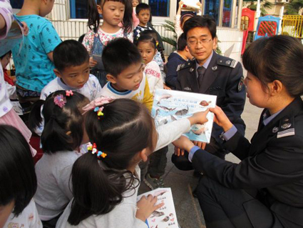 10月25日下午,淮南市水生野生动物保护科普宣传活动在田三幼举行,市渔政处工作人员带着一批国家重点保护水生野生动物的宣传图册、拼图和贴画等科普读物,为这里的孩子讲解水生野生动物保护科普知识。