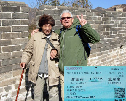 十八大前的北京给王登伦老人留下了深刻印象,他告诉记者,央视新闻中报道的天安门广场上的那个国庆大花篮还依然摆放在那里,到了现场你才能感受到,那个大花篮比电视中出现时,不知大了多少倍。登八达岭长城时,不少老外看到88岁高龄的王登伦都翘起了大拇指,记者在王登伦老人登长城的照片中,就看到几张老外主动与他的合影。