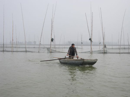 图四:两岸来往船只就是从图中船只后面紧贴水面的水网上穿过的。