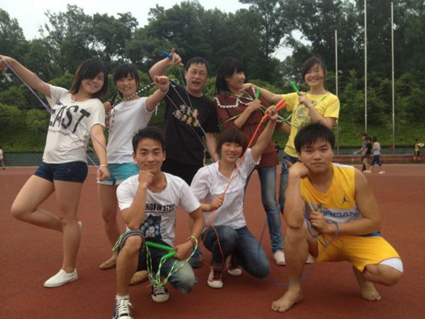 11月25日下午,淮南职业技术学院的足球场上,十余人飞舞着绳子,有单人跳,也有三、五人一起跳,阵阵欢笑声飘荡在球场上空。休息时分,记者见到了跳绳爱好者,也是组织者——熊作伟。他虽然年过40,但因为经常运动的原因,显得比实际年纪小了10来岁。“我从小就喜欢跳绳,一直断断续续地跳着,可能是出于对跳绳有着难以割舍的情怀,后来,从网络上了解到跳绳有多种花样,就开始潜心研究,跳出各种花式跳绳。”熊作伟一边说,一边从包里掏出各种各样的绳子。“这是竹节绳,适合单人跳;这是速度绳,比赛用的;这是牛筋绳,多人跳的……,绳子还有3.6米长的、7米长的……”谈起绳子,熊作伟滔滔不绝。
