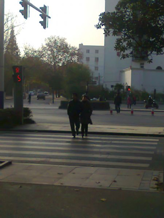 图三:一些市民在红灯亮时穿行马路。