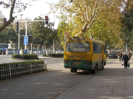 图一:红灯还剩下44秒,一辆中巴车迫不及待地从人行道上驶过。