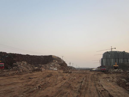 图为原来与山南隔开的土石已被夷为平地,直接通到志高动漫产业园