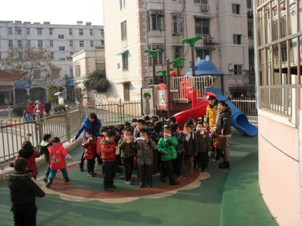 图二、孩子们安全撤离到操场上。