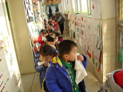 图一、孩子们从教室里有序撤离。