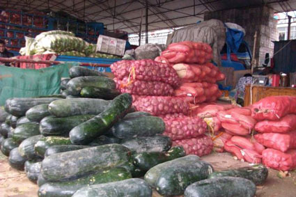 2月4日,记者探访了目前我市最大的蔬菜批发市场,位于田区的人民路蔬菜批发市场。据了解,从3日开始,这里已经一天24小时对外批发蔬菜了。当日下午4点左右,九龙岗的菜贩周永涛购买的蔬菜已经装满了电动三轮车,准备满载而归了。他批发了200斤葱、100斤芹菜、50斤西红柿,还有花菜、土豆等,批发价格尚可。现在是市民大量需求蔬菜的时候,他批发的蔬菜只够卖半天到一天时间的,这几日,他得天天来批发新鲜蔬菜。在市场内,记者看到,这里的蔬菜种类非常丰富,土豆、洋葱、黄瓜、芹菜、豆角、冬瓜等一应俱全。下午4点10分左右,该市场内最大的蔬菜批发商徐友侠正在清点自己的蔬菜,她家目前每天批发出去的各类蔬菜有十几吨。徐友侠告诉记者,目前蔬菜批发量比去年略小,有的蔬菜如包菜价格和去年相比贵了一些。而有的蔬菜如生瓜、豆角则基本与去年持平。生姜等则比去年价格低。记者从蔬菜批发市场管理办公室副主任田平那里了解到,目前市场内的批发商有40户左右,每天批发的蔬菜在200吨以上,蔬菜有周边蔬菜基地的,也有从海南、山东等全国各地的蔬菜基地运来的。这几天,来批发蔬菜的人比平时至少多出一半以上,一天24小时交易,一直持续到除夕。