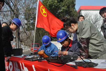 3月5日,国投新集设备维修中心团总支组织青工来到街头开展“学雷锋”志愿者服务活动,为当地居民提供免费家用电器的维修服务。