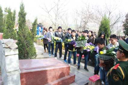 3月28日上午,罗山烈士陵园内一片庄严肃穆,淮南师范学院政法系团总支组织大学生们在此开展了扫墓活动。在清明节到来之际,学子们怀着崇敬的心情在烈士墓前列队肃然默哀,感受先烈们勇于奉献、不畏苦难的精神。同时,学子们向先烈敬献了鲜花,以此表达最崇高的敬意。