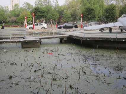两宫游园:4个池塘皆有漂浮垃圾