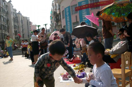 4月28日下午,稚嫩的叫卖声和讨价还价声在锦程幼儿园裕安分园里此起彼伏,小朋友们的“小本生意”红红火火。当日下午3时许,裕安分园举行“跳蚤市场”义卖活动,小朋友们将旧书籍、旧玩具等拿来义卖,当天义卖全部所得将捐给四川雅安地震灾区,献上一份小小的爱心。