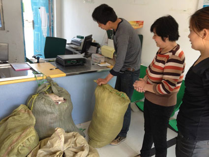 图为爱心人士在顾桥镇邮局向灾区寄衣服。