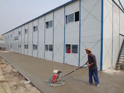 图为设在大郢村的过渡安置房项目中,工人师傅正在平整水泥道路。