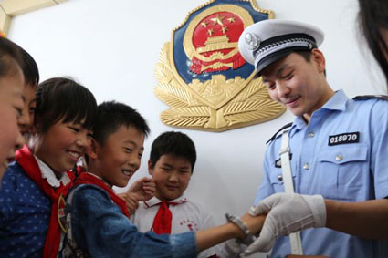 当天,公路巡逻大队民警先是带着小朋友们参观了服务大厅、醒酒室、信息采集室、问询室等办公、办案场所,接着民警又结合办案流程及交通事故图片、交通信号图片等,给小学生们上了一堂生动的交通安全课。上课结束后,公路巡逻大队民警又向小朋友们一一介绍了伸缩警棍、手铐、强光手电等警用装备的名称及用途。更令小朋友们喜出望外的是,他们还在民警的指导下当了一回“小交警”,有模有样地使用起了警用装备,过了一把警察瘾。参观活动结束后,公路巡逻大队民警向小朋友们赠送了30多本图书,祝福他们“六一”儿童节快乐。小朋友们接过书后,欢欢喜喜地告诉记者:当天他们在警营内不仅玩得开心,而且还学会了好多有用的交通知识,他们收到的这个儿童节大礼物一辈子也忘不掉。