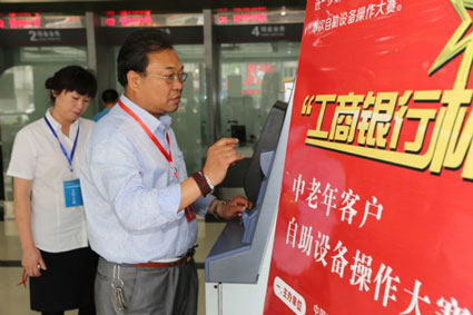 对于一些中老年朋友来说,宁愿手拿银行卡在柜台前排队等候半个小时也不愿去银行自助取款机取钱;宁愿相信用惯了一辈子的存折也不愿相信一张小小的银行卡片……但有些中老年人却可以轻松地对银行自助设备说“easy”。5月28日上午,来自淮南市各区的32位中老年朋友聚集在中国工商银行淮南分行,看谁能够在最短的时间内使用一台存取款一体机完成取款、存款、转账、查询4项交易业务,现年64岁的高老先生2分14秒完成所有操作,赢得了老年组的第一名;中年组参赛选手张女士比高老先生更快,2分04秒就完成了所有操作,赢得了中年组的第一名。而同样是这4项操作,一般的年轻人完成它也需要3分钟左右。
