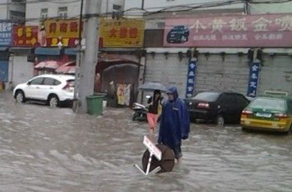 6月25日,一场大雨袭击淮南,市区多条道路出现积水现象,引起市民关注。当天上午,一张照片被发到淮南报业新闻网官方微博上,感动不少网友,纷纷向这名男子表达敬意之情。