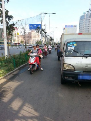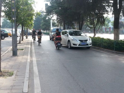 一些车辆不仅在停车场地随意停放,在市区的多条道路两边的自行车道和人行道等非机动车道上也常常可以看到随意停放的车辆,有的甚至是整排的停放。随意占据人行道和自行车道停放,致使人行道和自行车道越来越窄,有时行人和非机动车辆被迫从机动车道上行走,惹得行人抱怨不已。