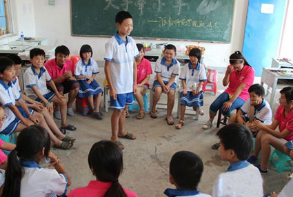7月29日上午,宣城市泾县昌桥乡孤峰村的王直助教中心教室内气氛热烈,10多个孩子在来自淮南师范学院的志愿者们带领下,纷纷说出自己的故事,放飞心中的梦想。