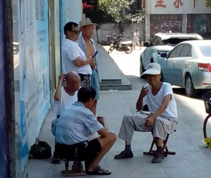 图二:老哥们几个围坐在阴凉地,唠上几个小时也不觉得累