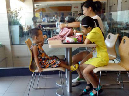 图一:炎炎夏日,孩子可以躲在快餐店里享受冰饮避暑,好不快活