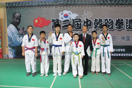 据了解,2013年第二届中韩跆拳道竞演大会于8月3日在德州市体育中心全民健身馆举办。来自全国的79个代表队1200名选手参加了比赛。本次比赛淮南旋风跆拳道体育健身俱乐部参赛的10名小选手围绕品势、跆拳操等开展竞技团体、个人项目的角逐。