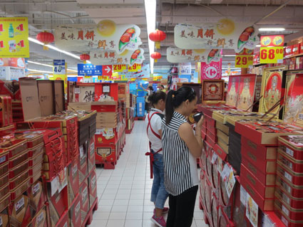 “月饼不需要多华丽的包装,多特别的味道,朴实纯正才有滋味!”看到市场上月饼价格普遍低于去年,谢家集区新华二村的陶大娘颇有感触地告诉记者。近年来,奢华包装、馅料名贵、口味另类的月饼充斥市场,不少消费者感觉吃月饼吃不出佳节味,送月饼送的都是包装盒。今年已经上市的月饼情况如何?消费者们能否和陶大娘一样享受到月饼带来的本真香甜?带着这样的疑问,记者走访了我市的部分超市,了解月饼的销售情况。