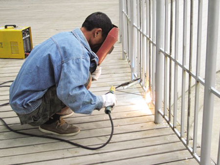 9月4日下午4点,龙湖景区工作人员郝德利正在给景区动物园的猴山周围的护栏焊钢筋(如图),加高、加密了一些护栏,让护栏更安全。据了解,随着中国豆腐文化节、中秋节以及国庆节的即将到来,龙湖景区的游人在节庆期间日均将达到1万多人,景区正在全力以赴做好各项工作让游客玩得更舒心。