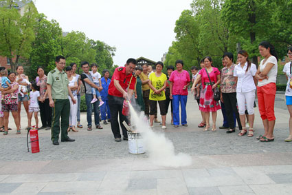 现场,消防官兵运用通俗易懂的语言向居民们讲解了火灾扑救、火场逃生、报火警要点、干粉灭火器的使用范围和方法、室外消防栓的使用等,并向大家做了演示,接着,消防官兵通过多功能消防宣传车,组织居民手持灭火器,对模拟火灾现场“起火点”进行灭火扑救,让居民群众学习“灭火”方法。虽然很多人是第一次使用灭火器,但还是很迅速地将火扑灭。