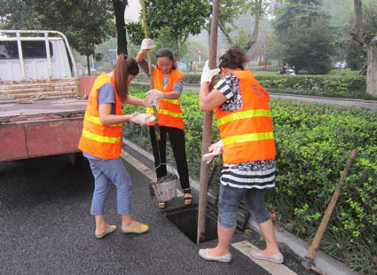 为迎接中秋佳节和第二十届中国豆腐文化节的到来,市市政管理处排水公司积极做好城市排水管网疏浚。连日来,该公司组织职工和排水机械,分别对洞山路、龙湖路、国庆路、广场路等主次干道的下水管网进行了清淤和维护,保证城区道路主排水管网的畅通,营造整洁干净的市容环境。图为9月12日上午,市政排水职工在洞山中路清理一处雨水井。