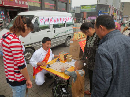 9月27日,六洲棋传承人蔡涛和非遗保护志愿者一道,来到市体育中心,宣传六洲棋。在活动现场,采用传统“寿州窑”陶瓷制作工艺制成的六洲棋具吸引了路过市民的眼球,他们纷纷聚拢在宣传展台前,了解这项历史悠久的棋类竞技项目。活动期间,还不乏一些六洲棋的小粉丝与蔡涛“一较高下”。据了解,六洲棋将与永京拳、轩辕车会、叶村叠罗汉、婆溪河灯等省内9个运动项目一起,参加今年11月在芜湖举行的中国体育文化博览会“中国体育非物质文化遗产展示”活动。据蔡涛介绍,为了参加此次盛会,他希望社会上的有识之士能够尽一份力,保护和传承这项非遗成果。他自己也将部分“寿州窑”六洲棋具捐献出来,组织义卖活动,所获得的经费将全部投入到非遗保护之中。 图为,“我也是六洲棋的粉丝!”