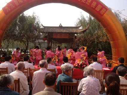 10月12日上午,桃园居老年公寓内锣鼓喧天,今晚800志愿者服务团的志愿者们和一群小朋友与这里的老人们欢聚一堂。