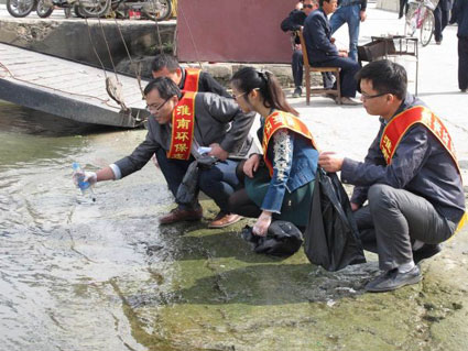活动中,环保志愿者还来到淮河边,捡拾垃圾。志愿者说,淮河是我们的母亲河,保护母亲河是我们义不容辞的责任。捡拾垃圾后,志愿者还专门在淮河提取了水样,准备拿回去做检测,以科学的方法保护资源,爱护环境。