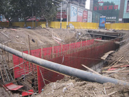 图一二为人民北路箱涵扩建工程施工现场。