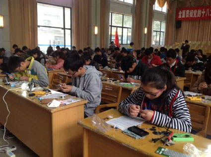 第一次大规模的大学生电子制作大赛活动是由淮南市科协主办、田家庵区科协承办,旨在培养青少年的科技创新精神和实践能力,提高学生们的科学素质。田家庵区科协主席胡斌形象地比喻说:“S66E(D)型六管超外差式收音机就像麻雀虽小,功能齐全,锻炼的是动手动脑能力,考验的是耐心、细心。他们的表现都不错。”