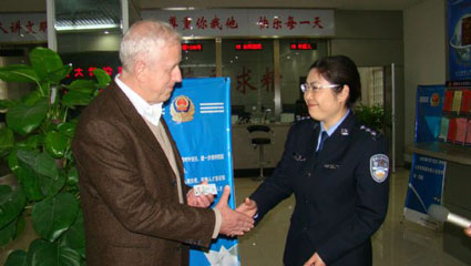 11月1日下午,法国人克里斯汀·韦伯尔从淮南市公安局出入境管理局柏平局长手中接过外国人永久居留证,成为淮南首个获得夫妻团聚类中国“绿卡”的外籍人员。