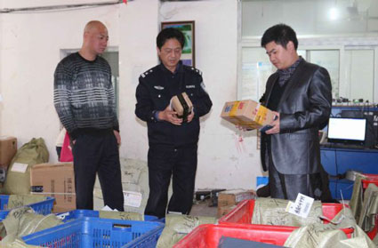 图:淮南市邮政管理局、淮南市公安局组成联合检查小组,巡查各快递企业备战双十一揽件、派单情况。