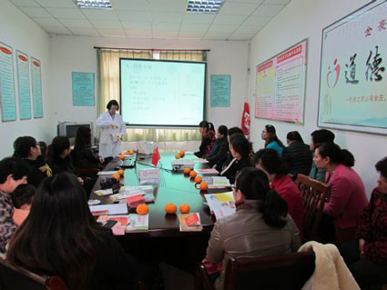 11月21日国庆街道金豪社区请来医务工作者进行《安全分娩法和分娩呼吸法介绍》专题讲座。社区里多位准妈妈及其家庭成员应邀前来参加听课。